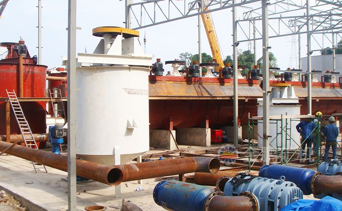 該系統由脫水系統、攪拌系統、管路輸送系統和自動檢測及調節系統等四部分組成的。尾砂漿由深錐濃密機或立式砂倉濃密后輸送至攪拌機,與水泥和水一起進行攪拌制備成高濃度料漿,之后再進入活化攪拌機進行攪拌以提高料漿的和易性,然后通過管路由充填工業泵加壓泵送至井下采空區。